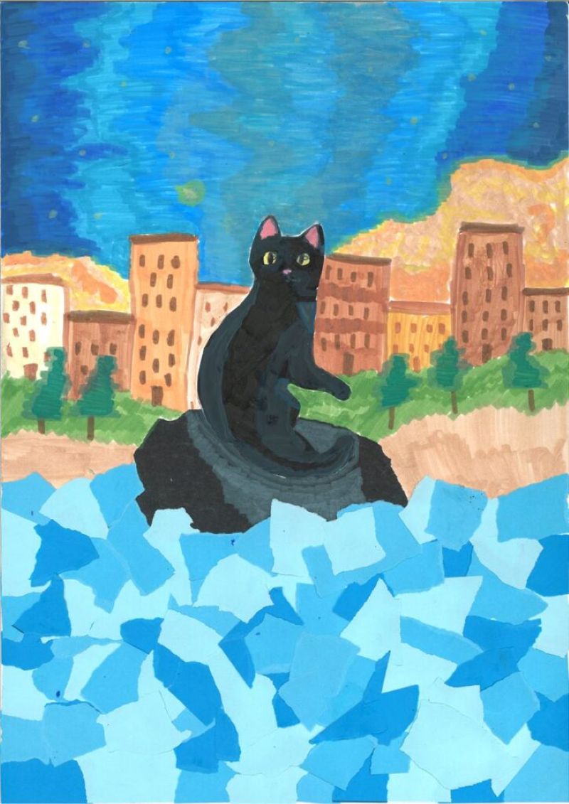 Anna Jurek z kl. VI ze Szkoły Podstawowej im. Jana Brzechwy w Skrudzinie – za pracę „Kot, który nie bał się wody. Z filmu FLOW”