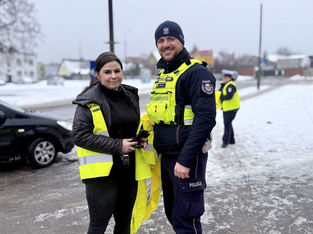 Podczas spotkań policjanci rozdawali pieszym kamizelki i elementy odblaskowe które znacząco zwiększają widoczność po zmroku i w trudnych warunkach drogowych. Funkcjonariusze zwracali uwagę na to że opady deszczu, śliska nawierzchnia i ograniczona widoczność sprawiają iż pieszy bez odblasku staje się dla kierującego praktycznie niewidoczny.